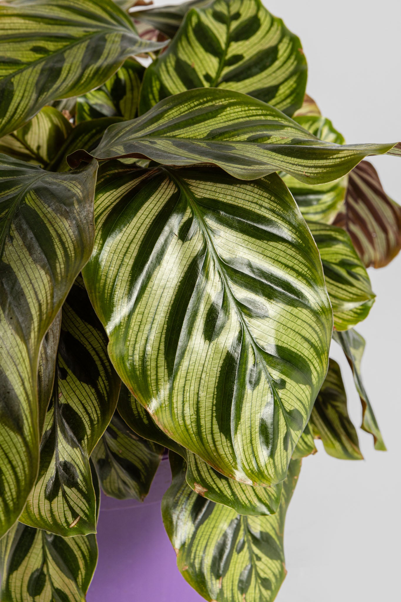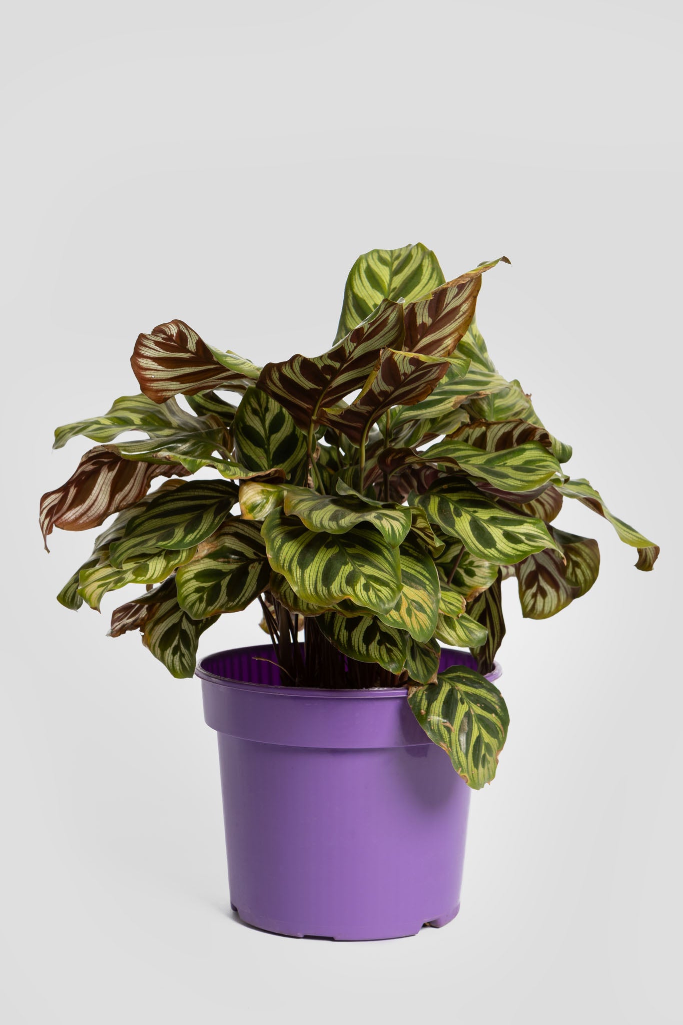 Η Καλαθέα είναι ένα κομψό, τροπικό φυτό εσωτερικού χώρου, αγαπητό για τα εντυπωσιακά, πολύχρωμα φύλλα του με μοναδικά σχέδια και αποχρώσεις πράσινου, ροζ, ασημί και μωβ. Ανήκει στην οικογένεια Marantaceae και θεωρείται σύμβολο «ζωντανής διακόσμησης», αφού τα φύλλα της κινούνται ελαφρά μέσα στην ημέρα, ακολουθώντας το φως. Είναι ιδανική επιλογή για όσους θέλουν ένα φυλλώδες, διακοσμητικό φυτό με εξωτικό χαρακτήρα.