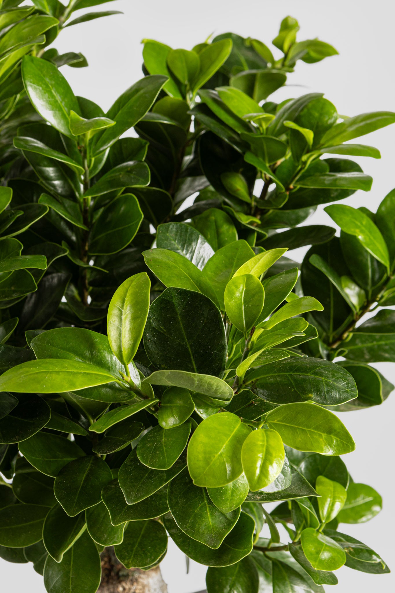 Ο Μπονσάι Φίκος (Ficus microcarpa), γνωστός και ως Ginseng Ficus, είναι ένα εντυπωσιακό φυτό εσωτερικού χώρου, αγαπημένο για τον καλλιτεχνικό του κορμό και τα μικρά, γυαλιστερά φύλλα του. Ξεχωρίζει για την κομψότητα που χαρίζει σε κάθε χώρο, ενώ θεωρείται από τα πιο εύκολα μπονσάι στη φροντίδα, ιδανικό για αρχάριους αλλά και για συλλέκτες.